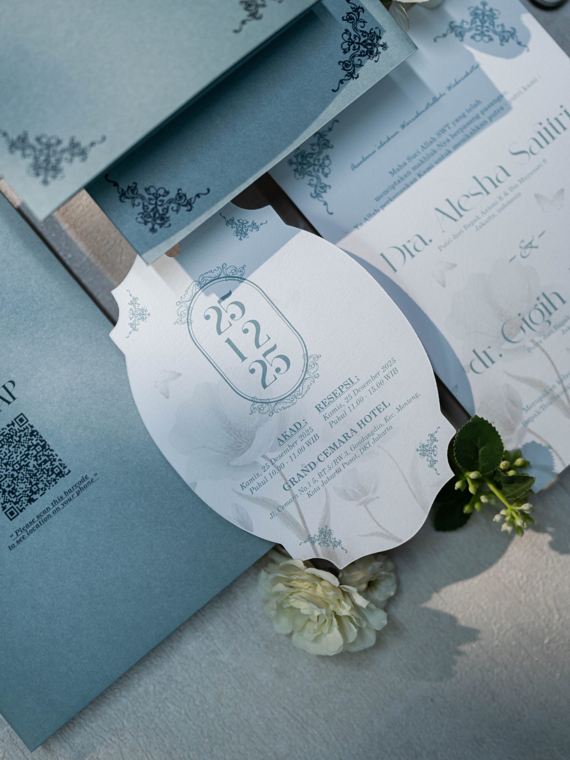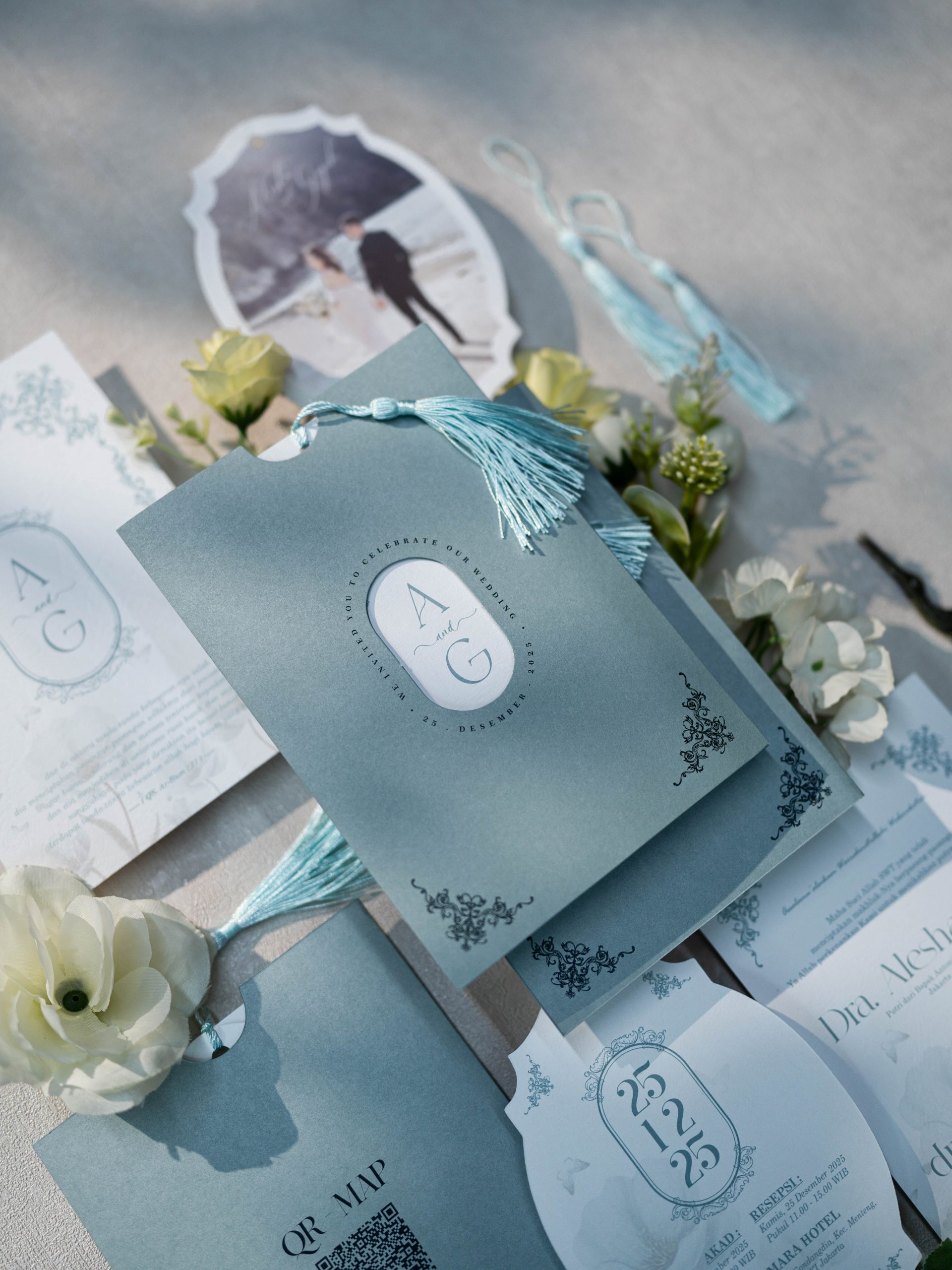 Alba is designed for couples who appreciate a clean layout with subtle detail. Balanced typography, soft tones, and a neat pocket presentation make this suite polished without feeling overdone.