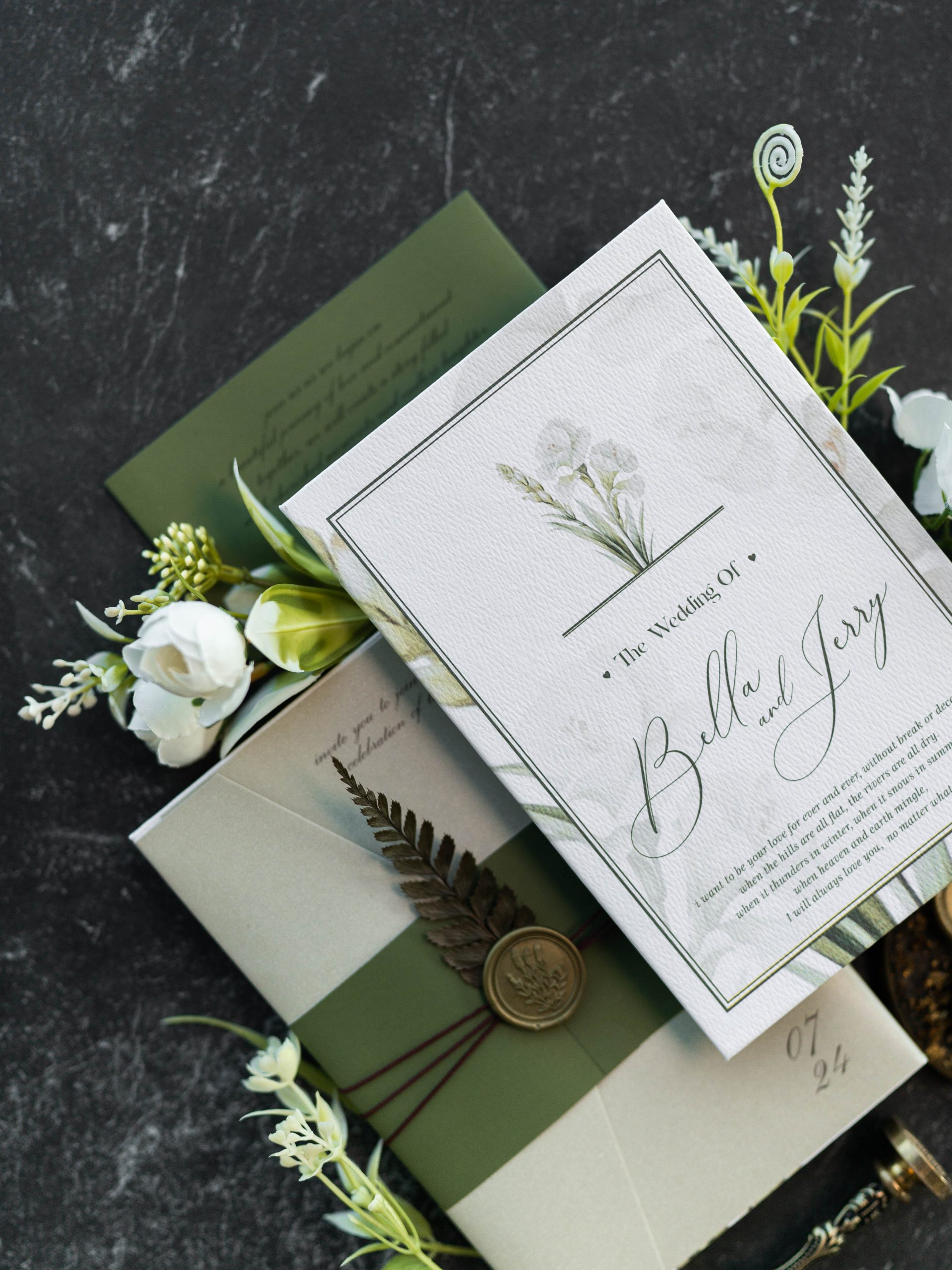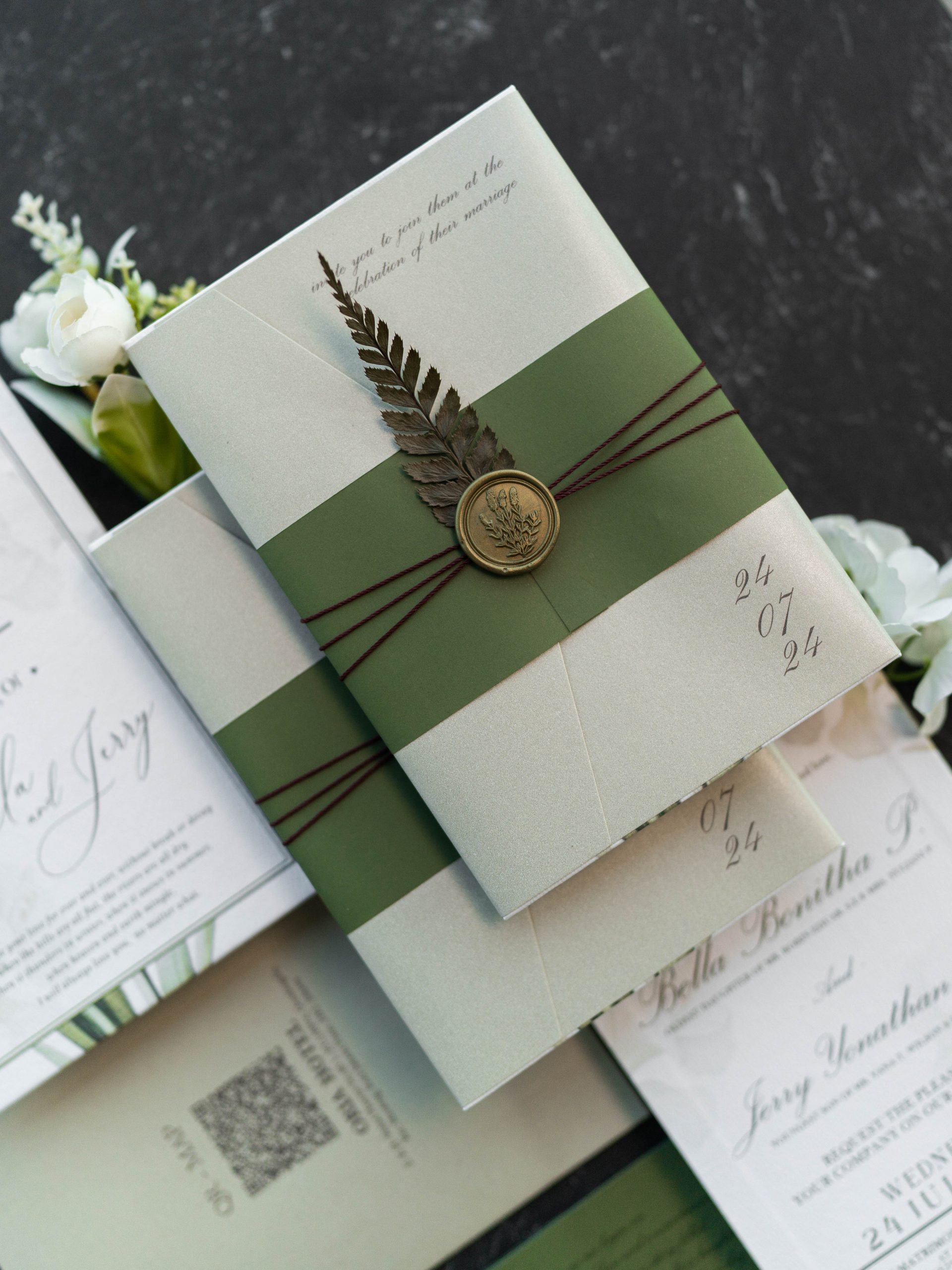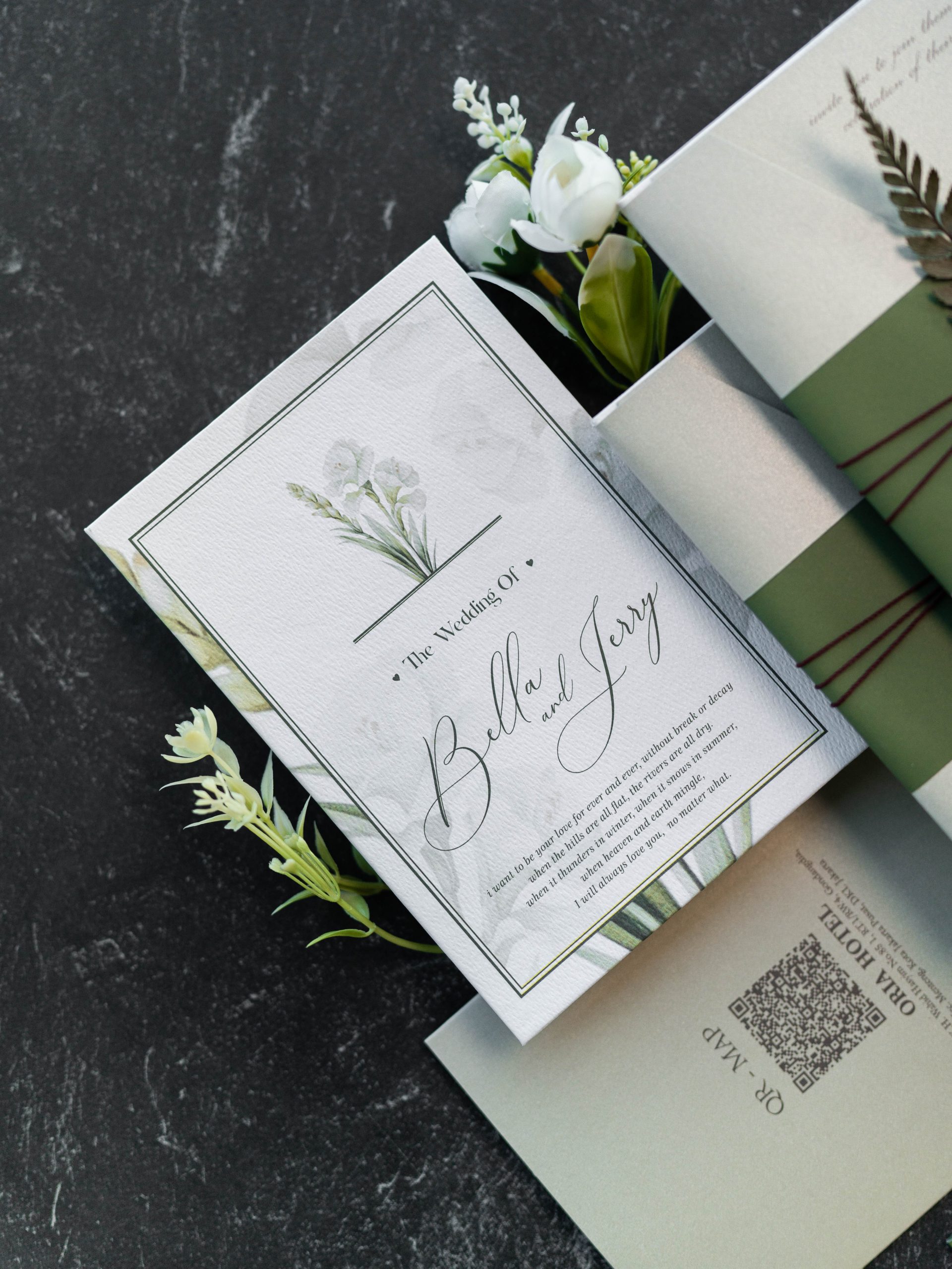 • Hardcover main invitation – 12.5 × 18.5 cm