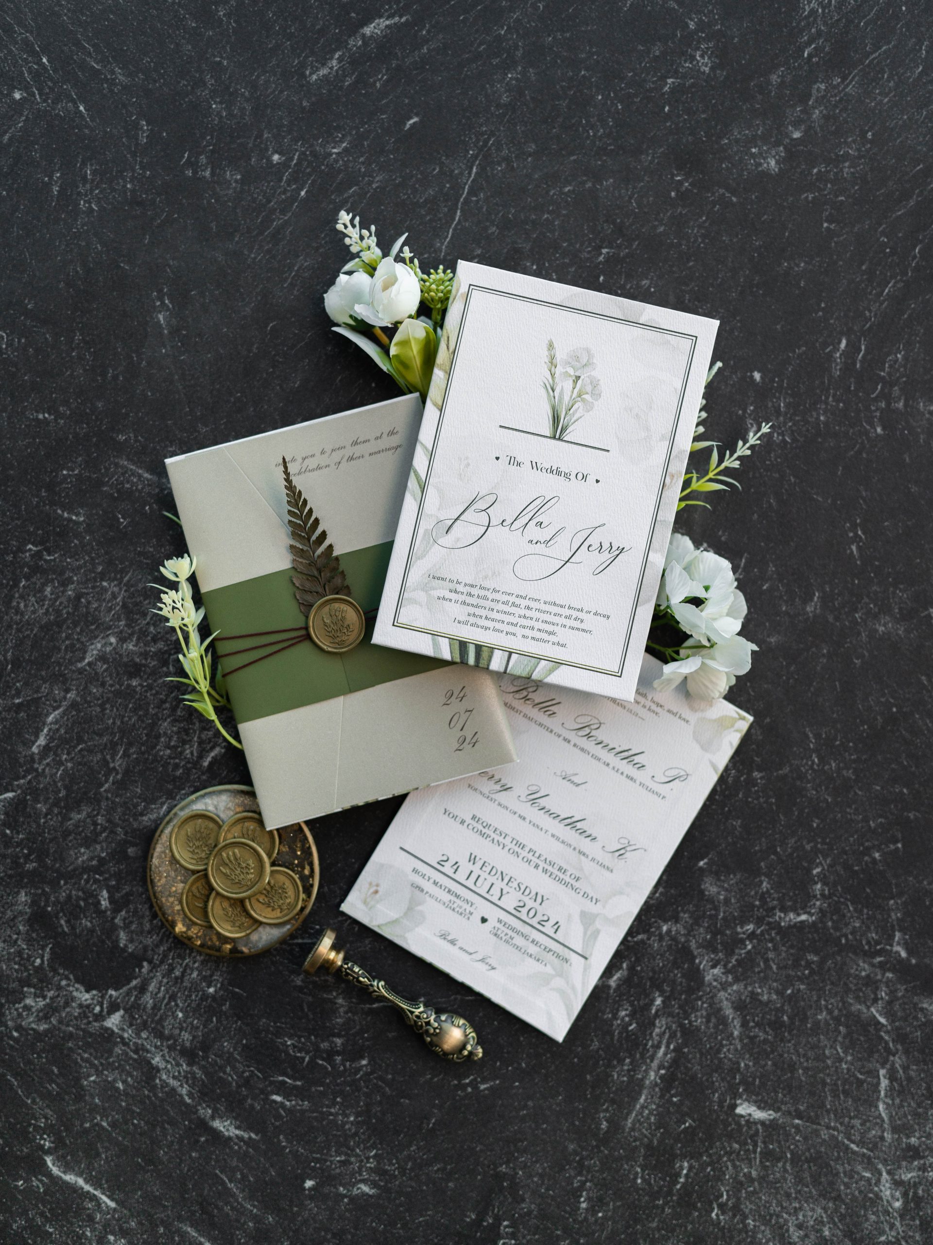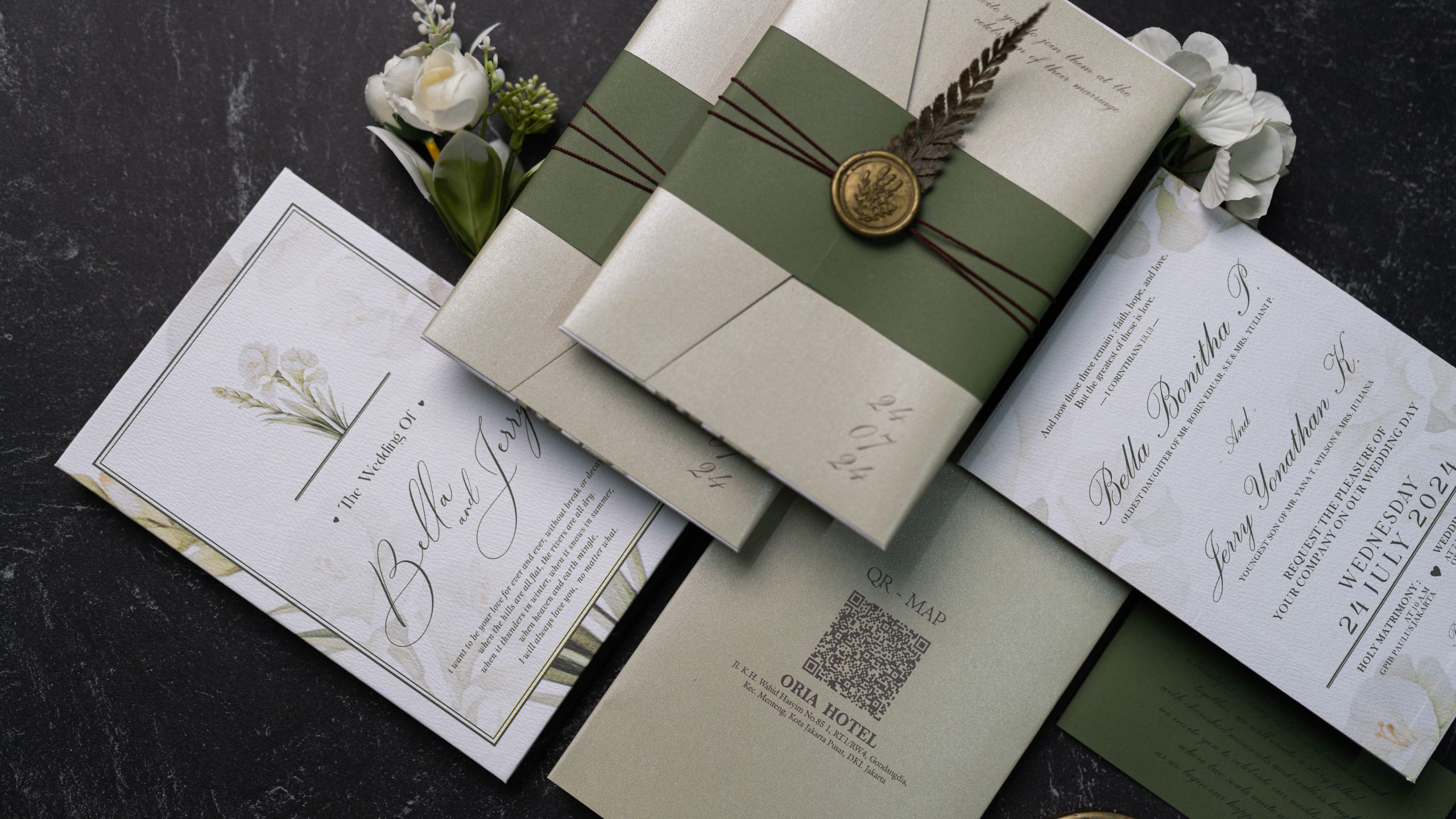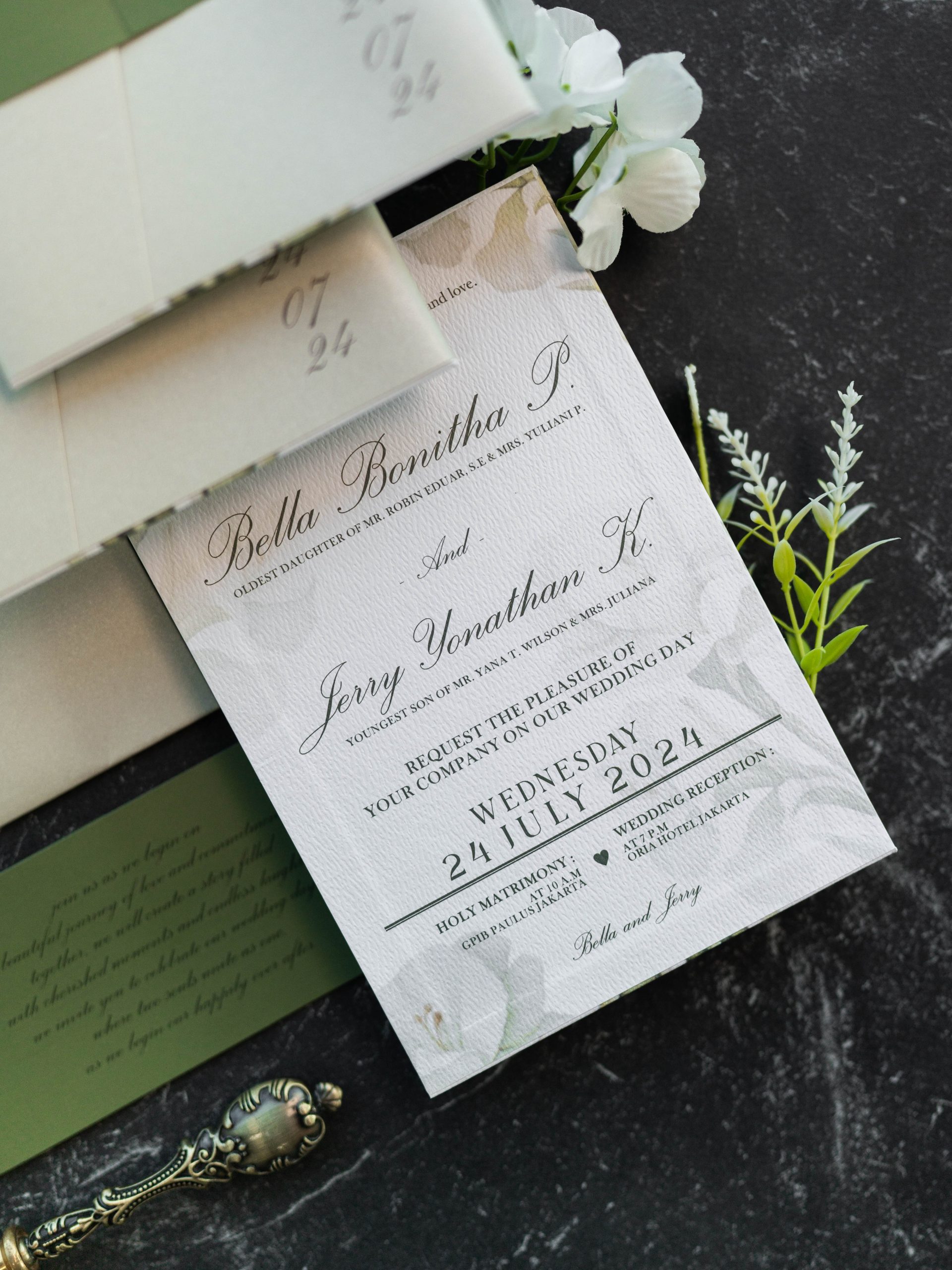 • Hardcover main invitation – 12.5 × 18.5 cm