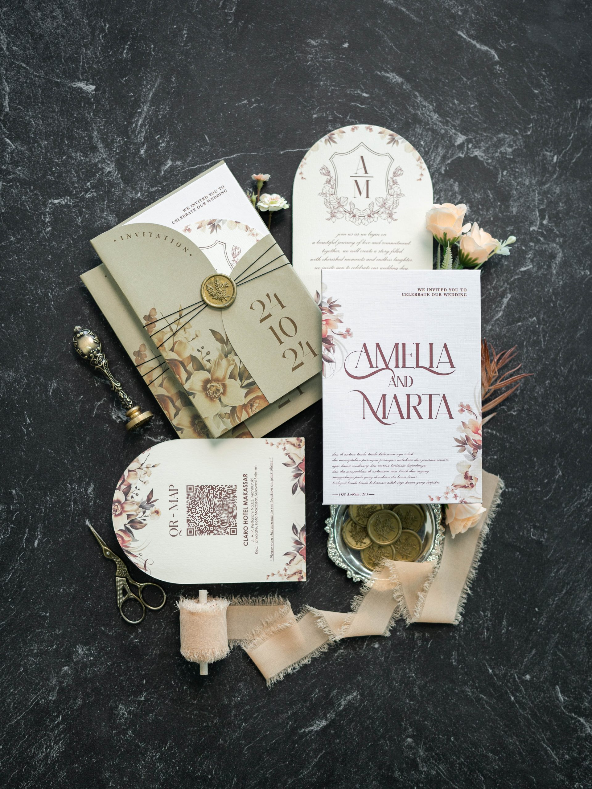 • Structured main invitation – 12.5 × 18.5 cm