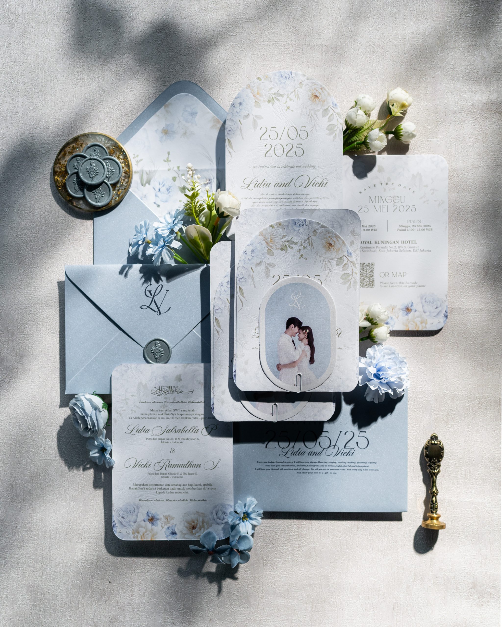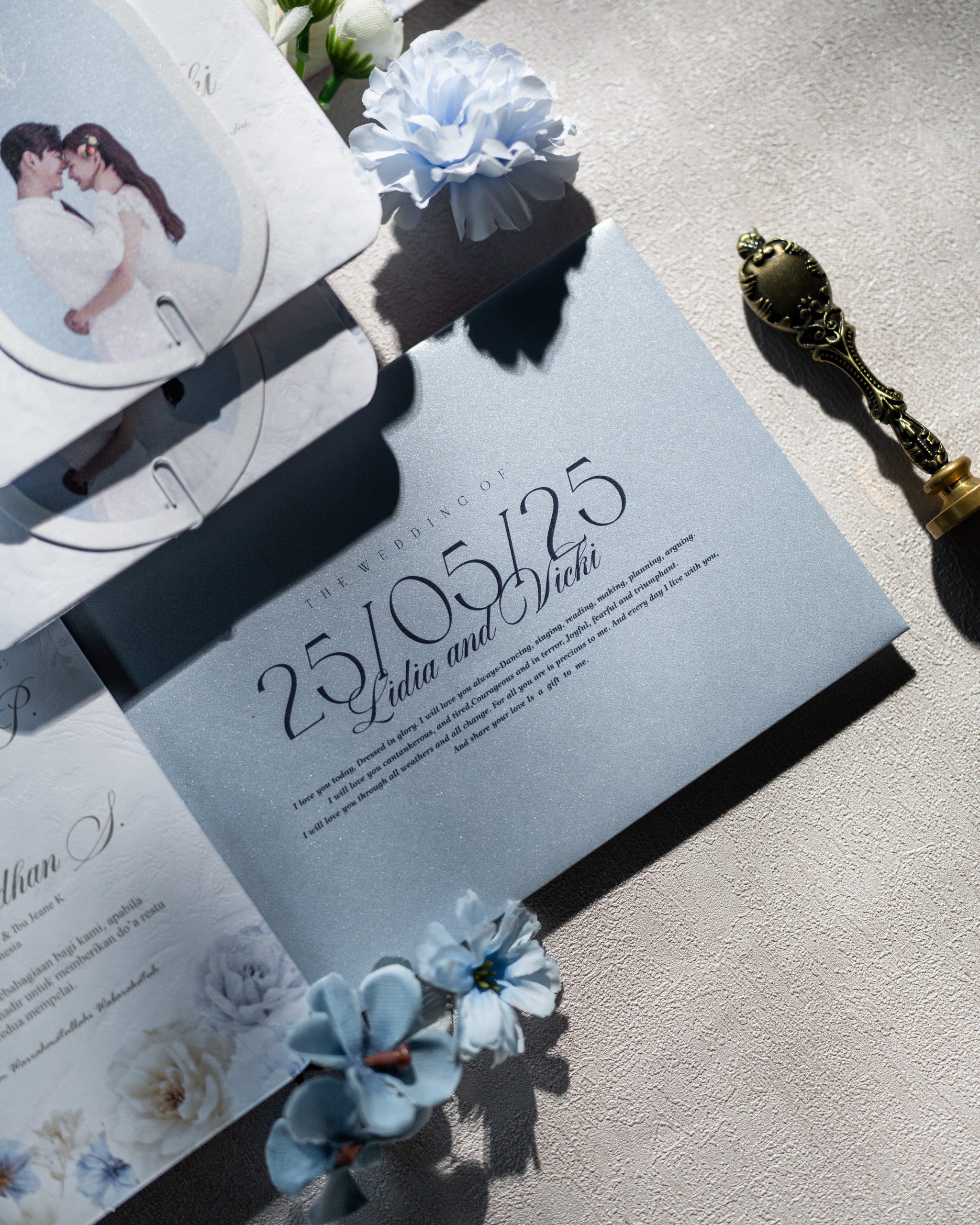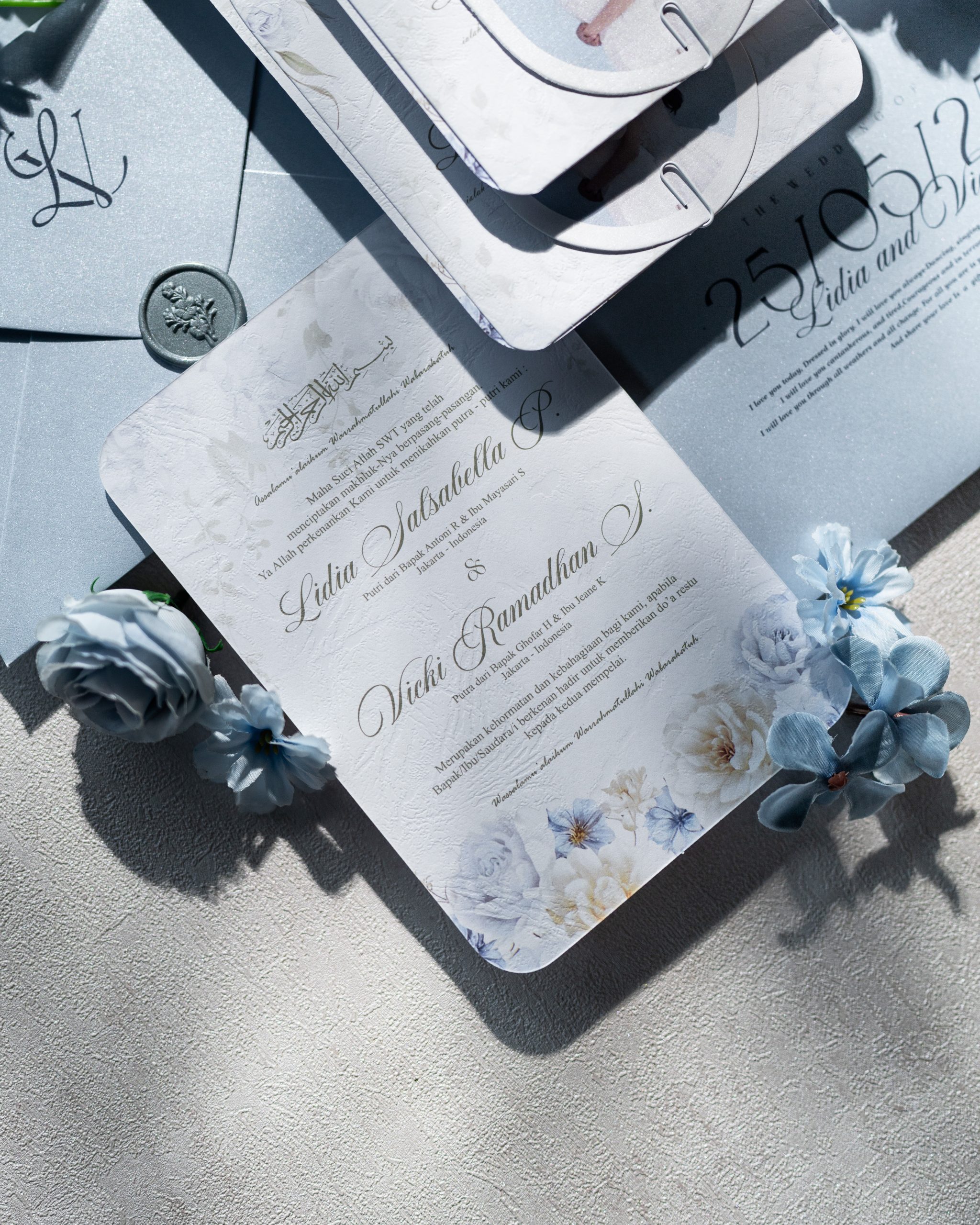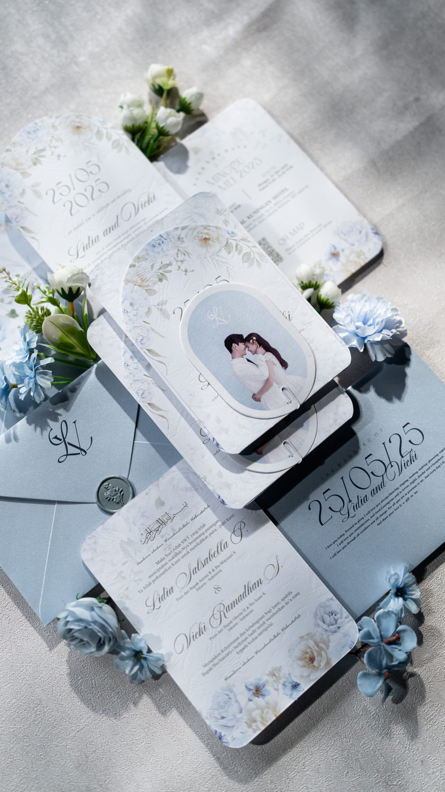 Luna features a softcover rounded rectangle format paired with an arch insert and coordinating photo card. Secured with a minimal paper clip fastening, the layout remains structured and organised while keeping the overall look refined and uncomplicated.
