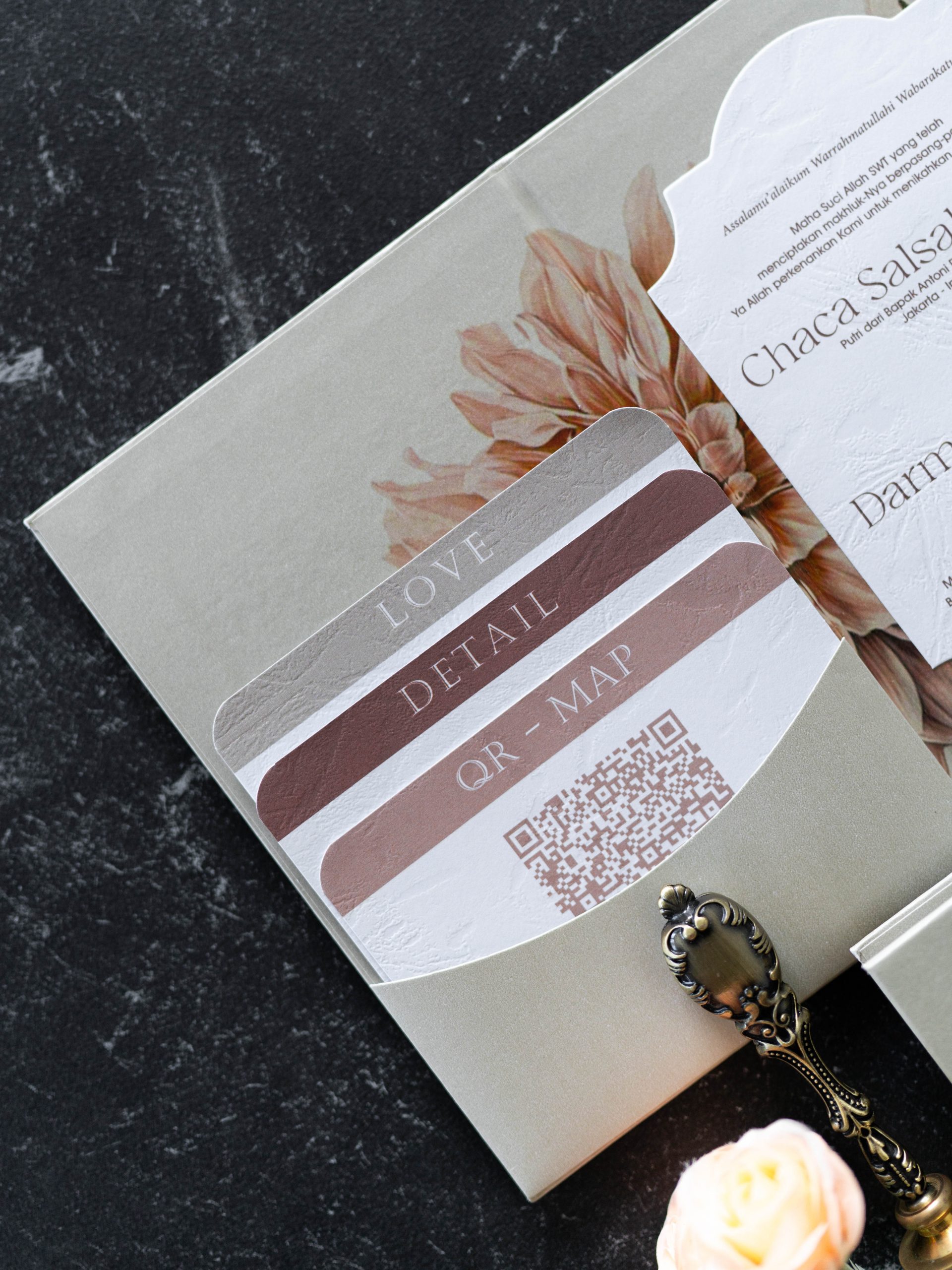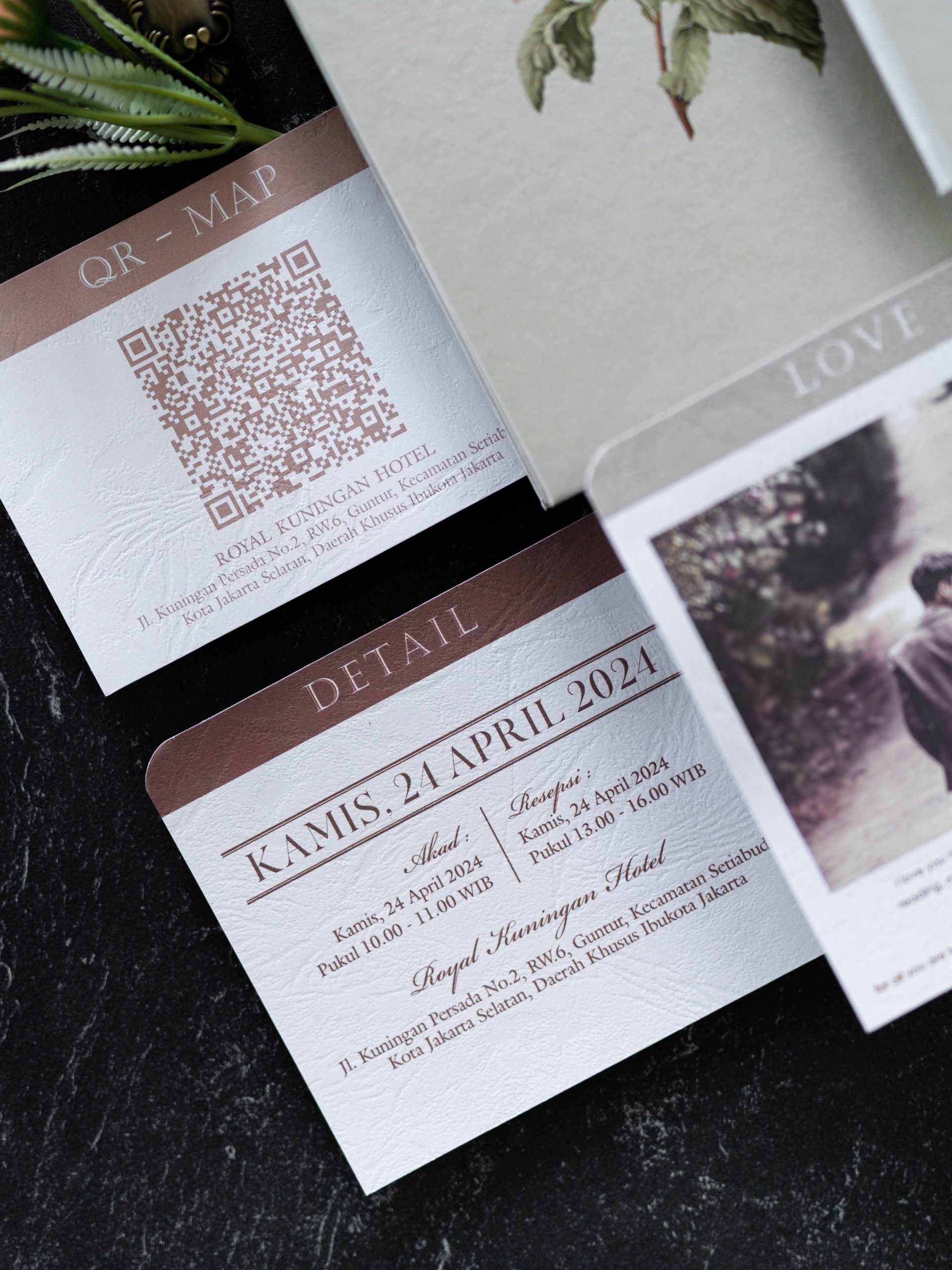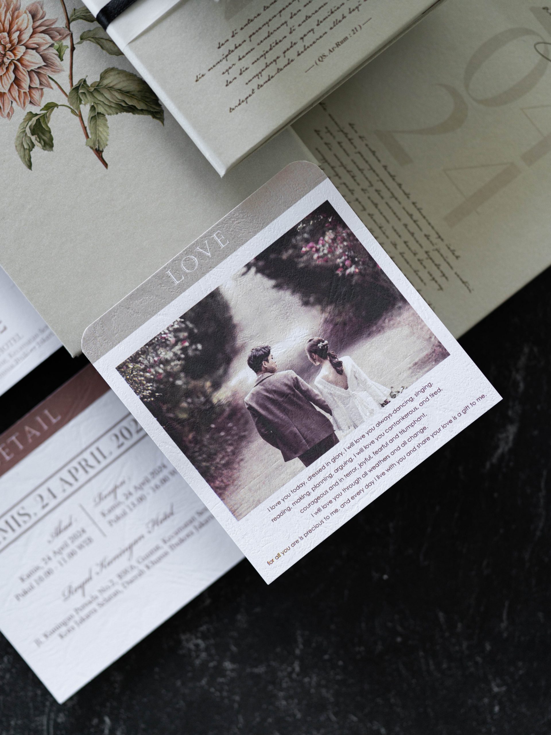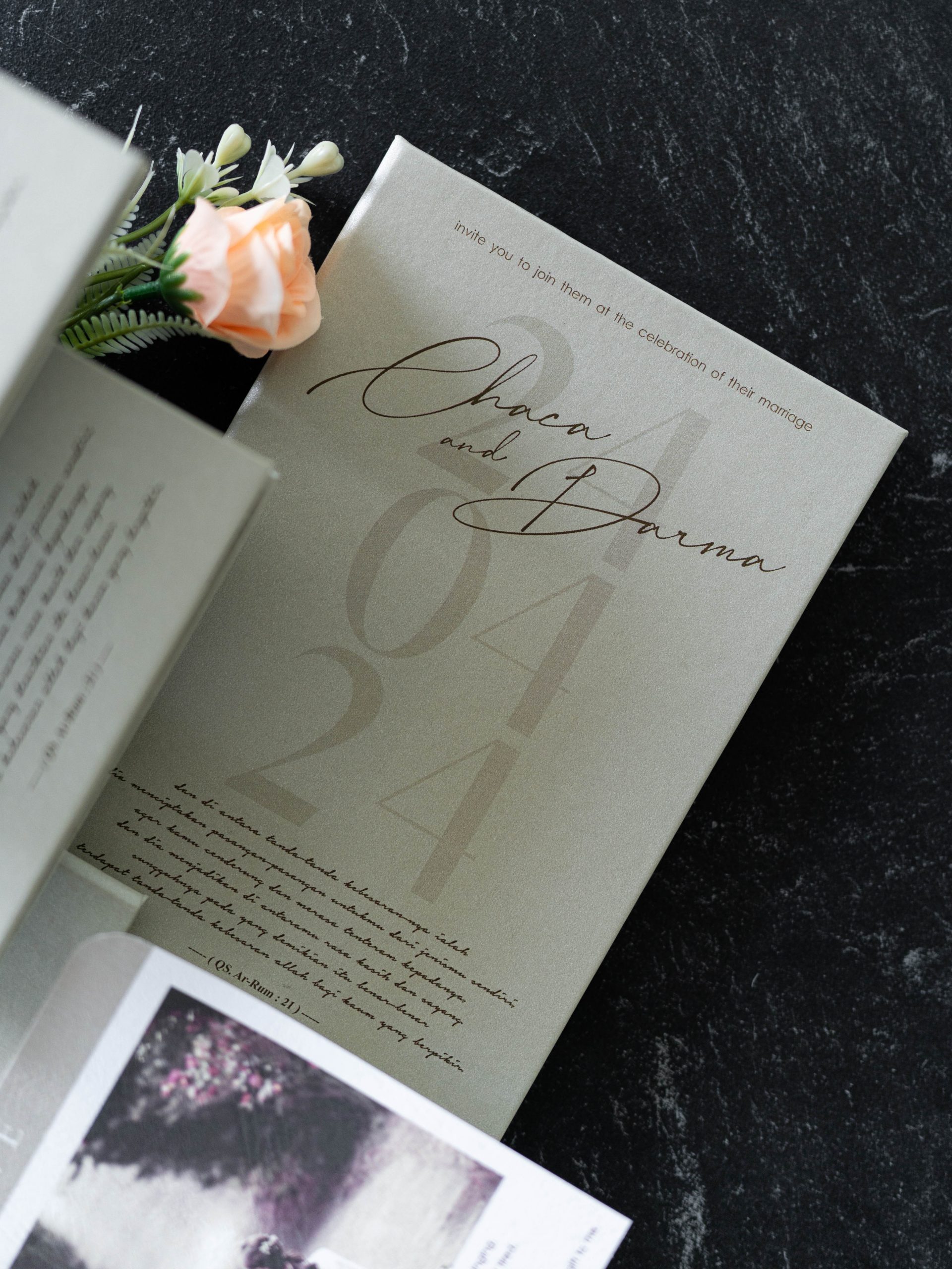 • Folded hardcover invitation – 12.5 × 18.5 cm