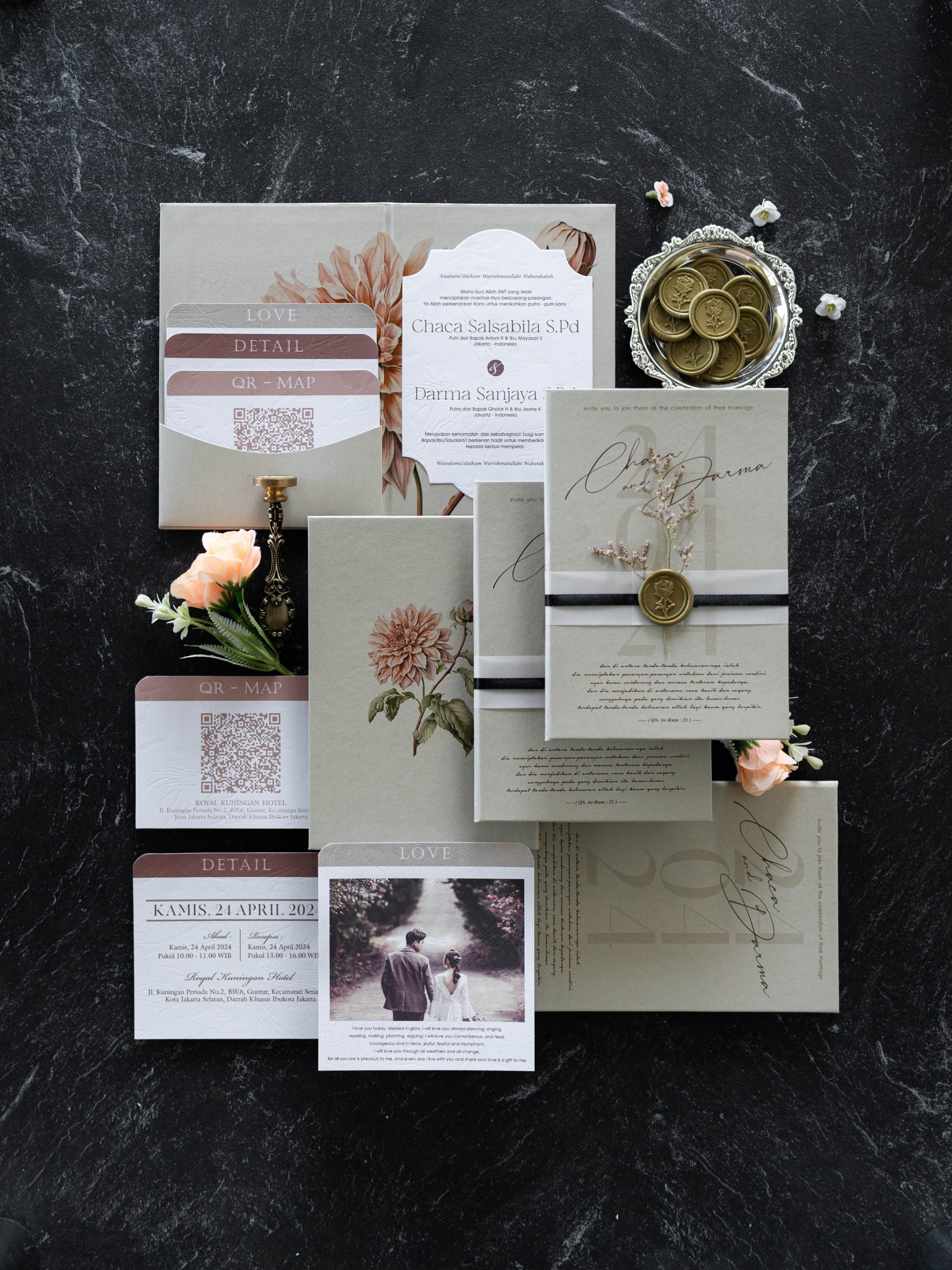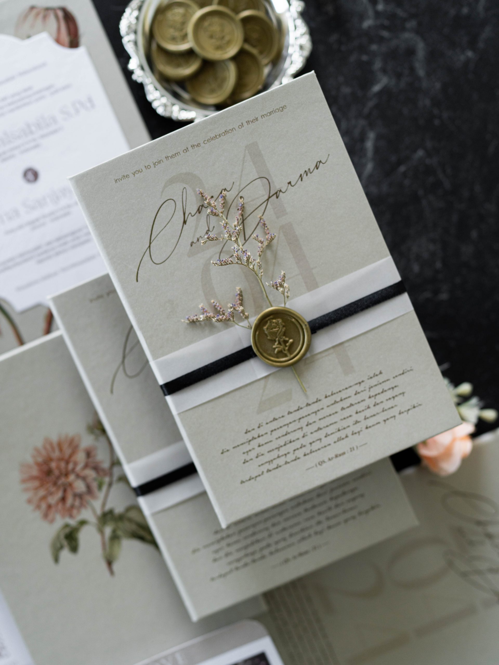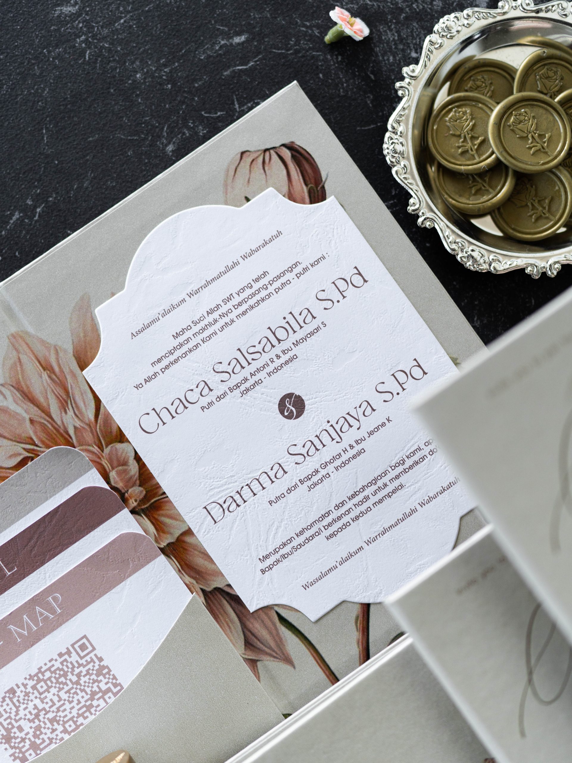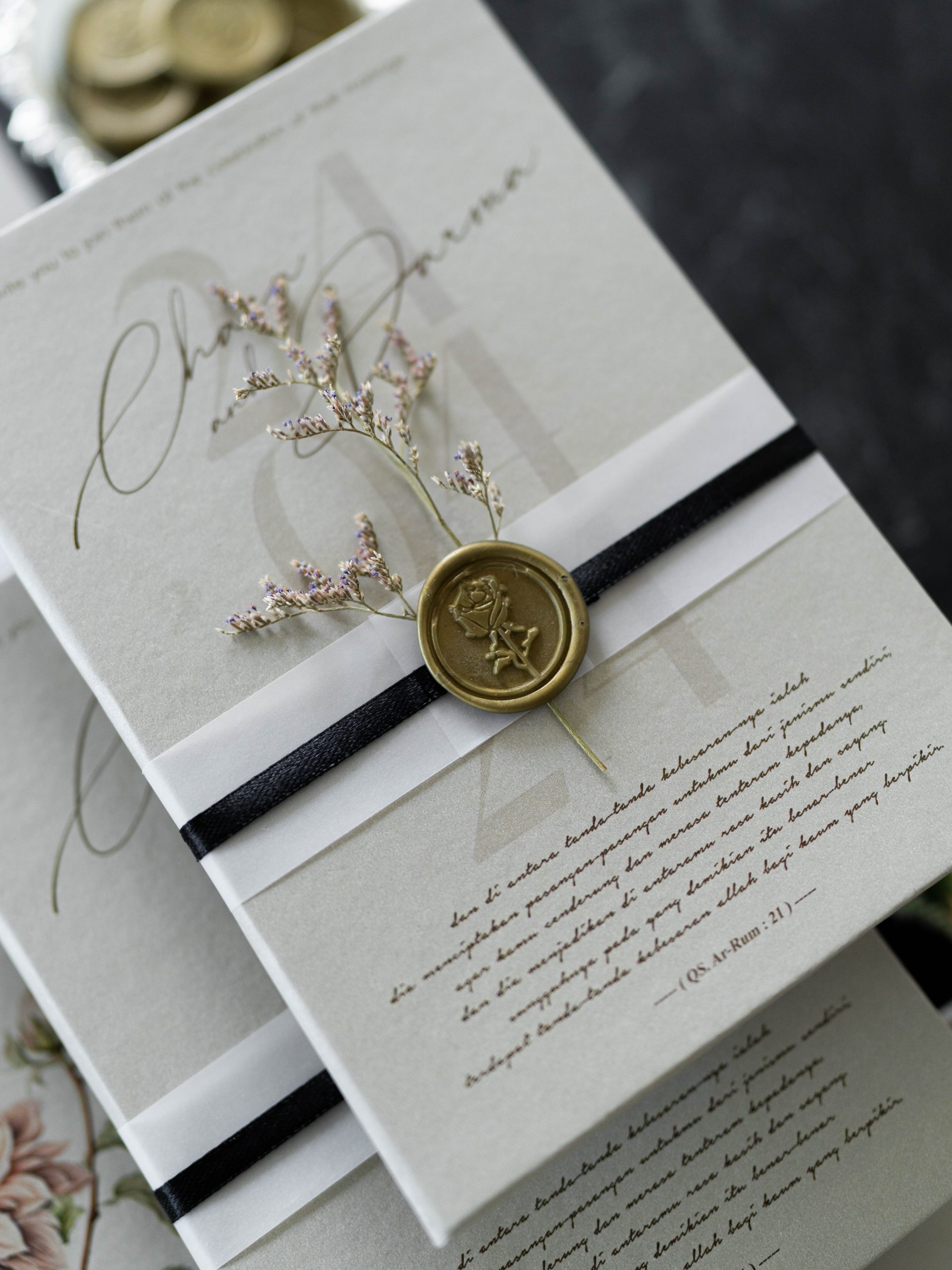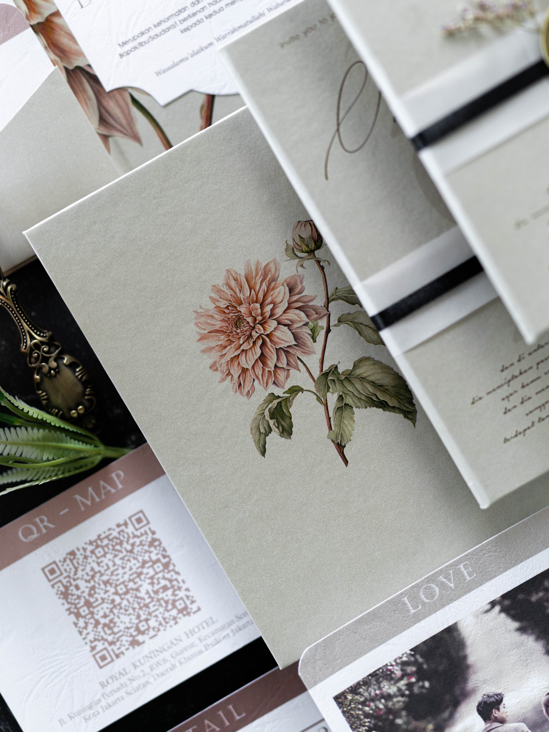 • Folded hardcover invitation – 12.5 × 18.5 cm